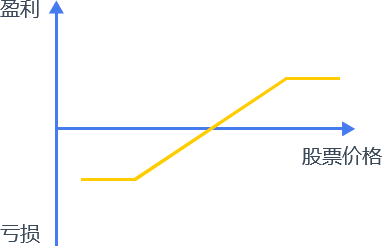 买入认沽期权,获得到期日卖出标的证券的权利。图中可见,标的证券价格高于行权价时,买方亏损额保持不变,为权利金金额;标的证券价格跌至行权价以下时,买方亏损缩小;标的证券价格继续跌至行权价减权利金之差(即盈亏平衡点)以下时,买方实现扭亏为盈。
